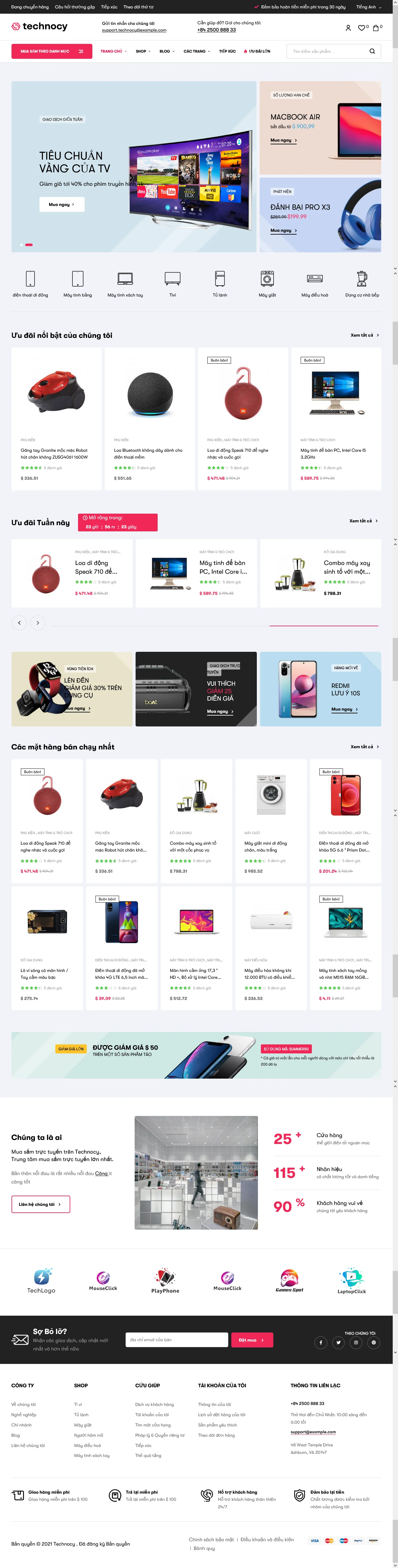Mẫu giao diện shop bán hàng điện tử, điện lạnh được thiết kế mới nhất. Sử dụng lâu dài, có thể thường xuyên update mà không lo lỗi thời. Đây là một mẫu giao diện rất đẹp được thiết kế trên nền tảng mã nguồn mở Wordpress. Thông dụng và dễ sử dụng nhất hiện nay.